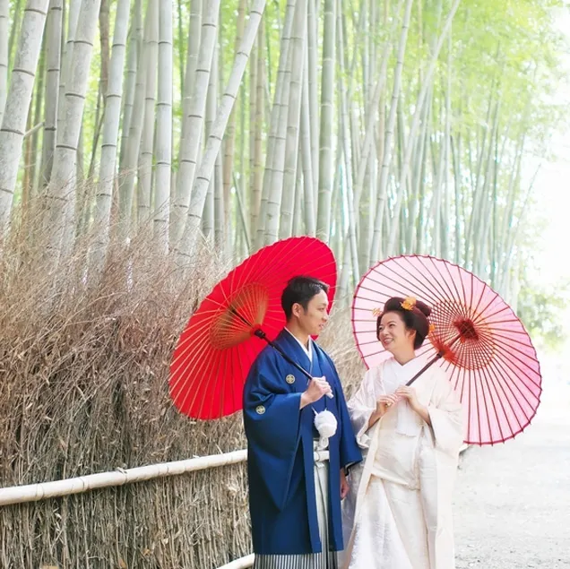 京都屈指の観光スポット「嵐山」。その中でも、竹林の小径は緑が非常に美しいスポットとして和装ロケーション撮影が大変人気です。