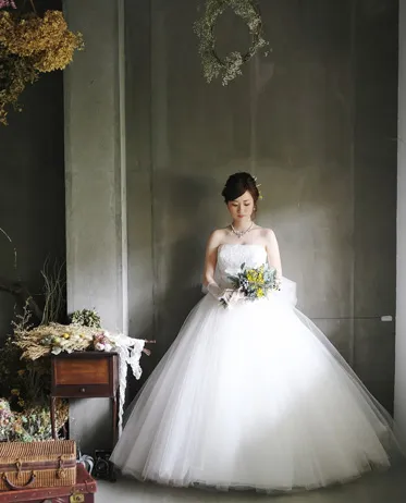 スタジオでのフォトウェディングは、リーズナブルに人目や季節、時間を気にせず撮影が可能です。